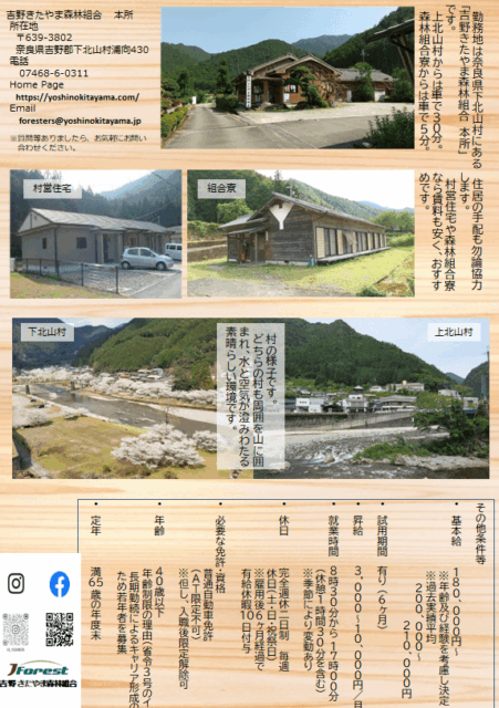 奈良県下北山村の吉野きたやま森林組合で、あなたも活躍しませんか?